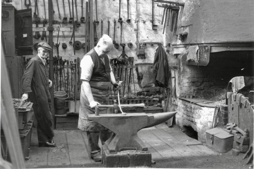 A scene which probably changed little in a century and more – the shed blacksmith’s shop. CREDIT: Carl Stratmann (‘H.G. Forsythe’)